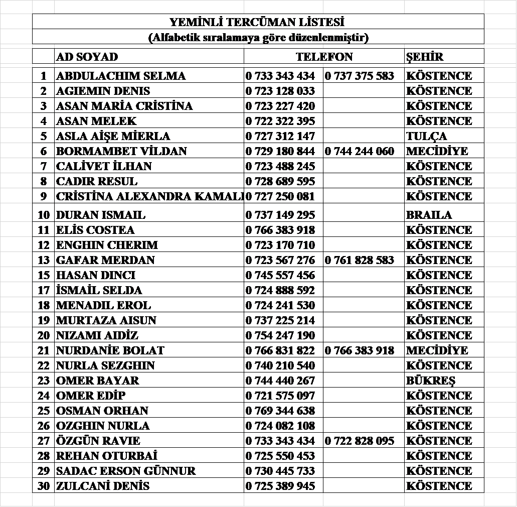 Yeminli Tercümanlar Listemiz
